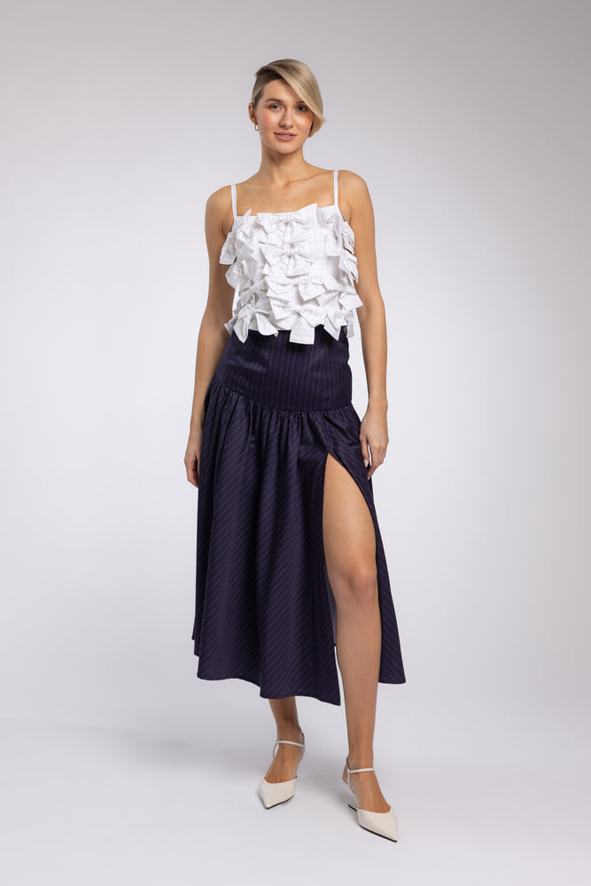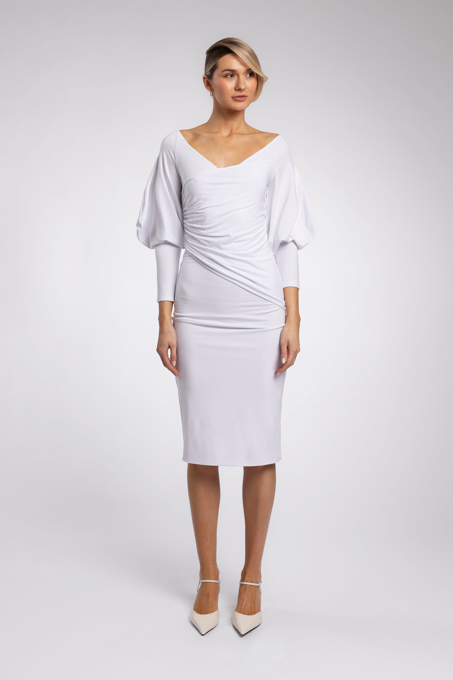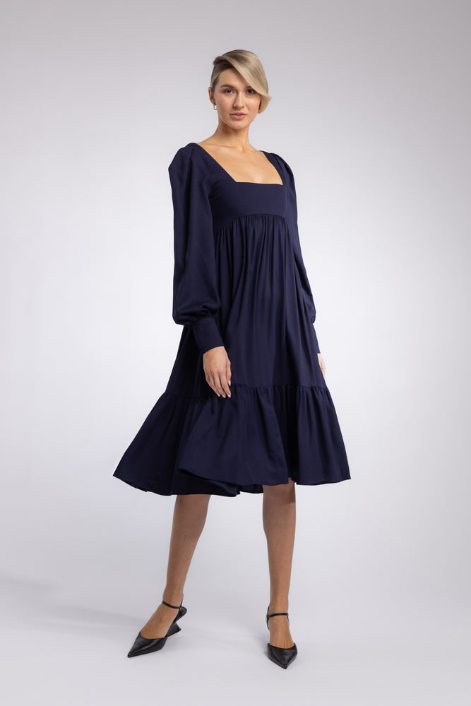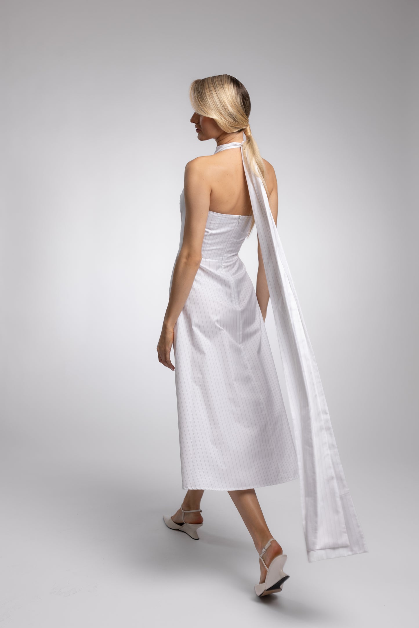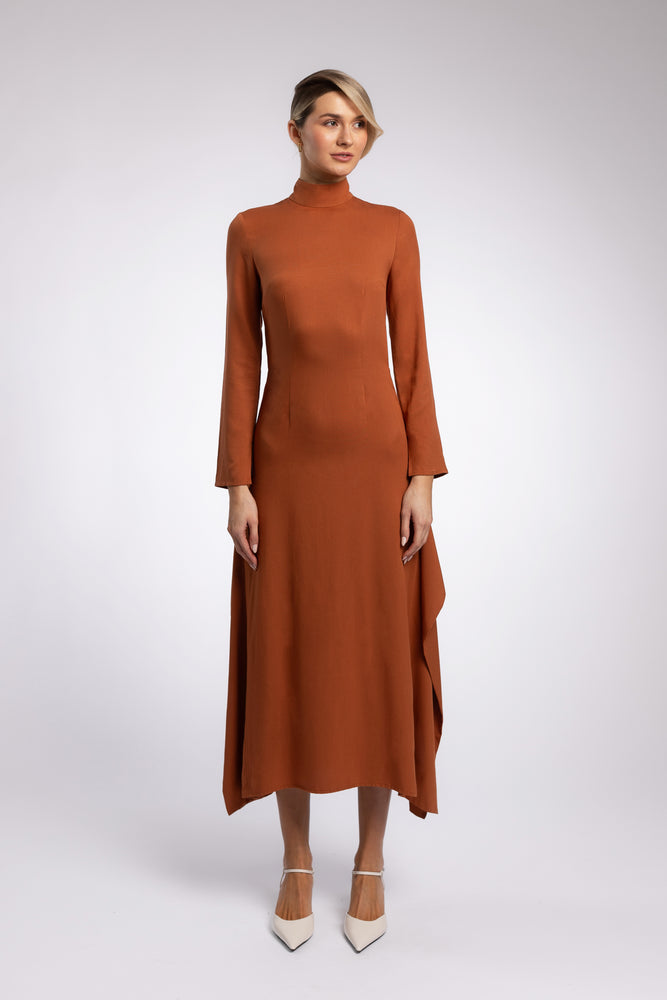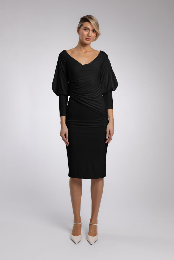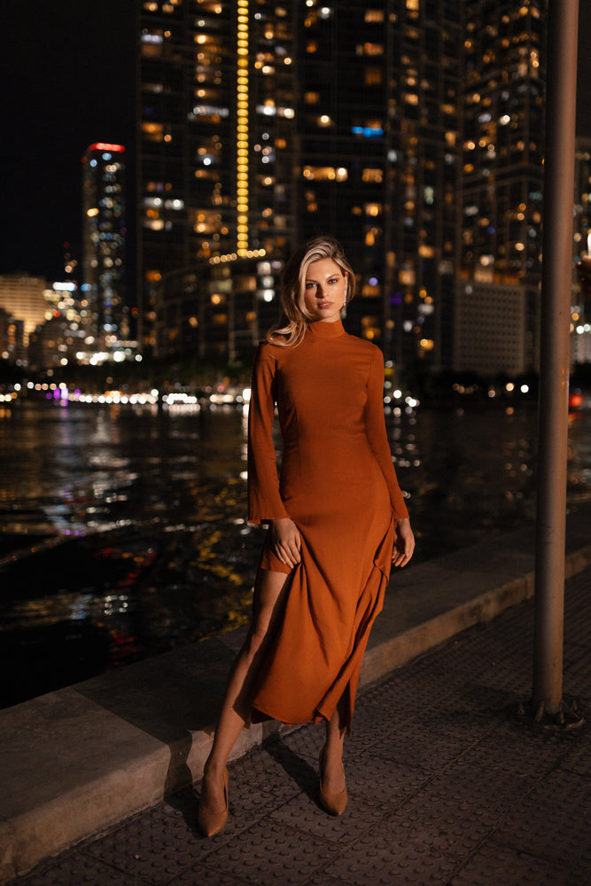 We want to offer you this dress with a promise: “Wear PERISSA and you will not be forgotten!”PERISSA is not your usual black dress: the high neckline statuesque silhouette, the daring side splits and the revealing open back are all together a very charming mix. Wear yours with high heels for a show-stopping effect: sandals, platform pumps or platform clogs.